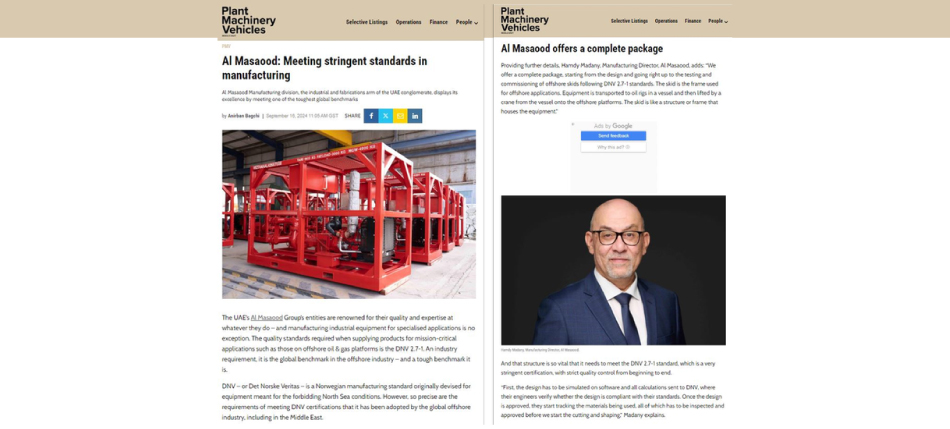 Hamdy Hamdani, Manufacturing Director at Al Masaood Commercial Vehicles and Equipment - Manufacturing, was recently featured in PMV Middle East Magazine. The article, titled "Al Masaood: Meeting Stringent Standards in Manufacturing", highlights CVE’s stringent processes for producing offshore skids, ensuring compliance with international standards.